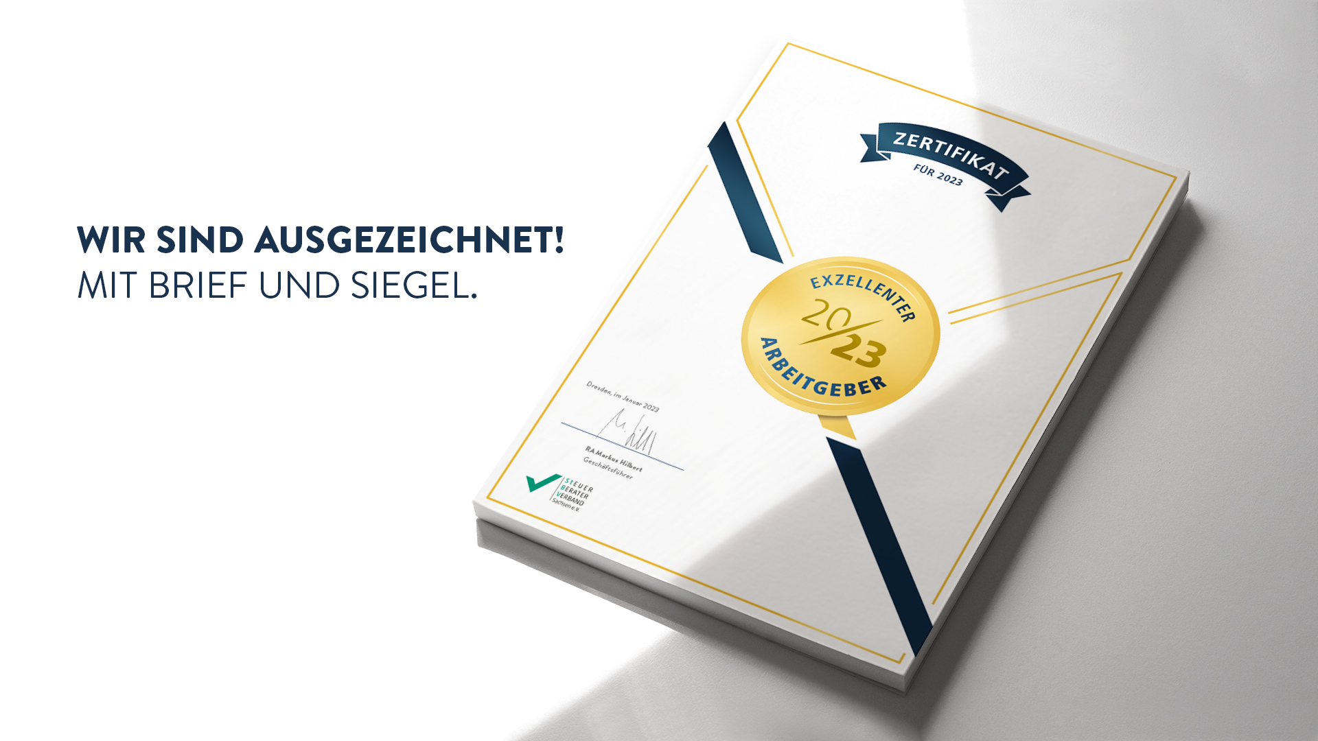 Wir dürfen stolz unsere neue Auszeichnung "Exzellenter Arbeitgeber 2023" durch den Steuerberaterverband Sachsen e.V. präsentieren. Unsere Kanzlei wurde mit den verschiedenen Auswahlkriterien von dem renommierten Personal des Verbands unter die Lupe genommen.
